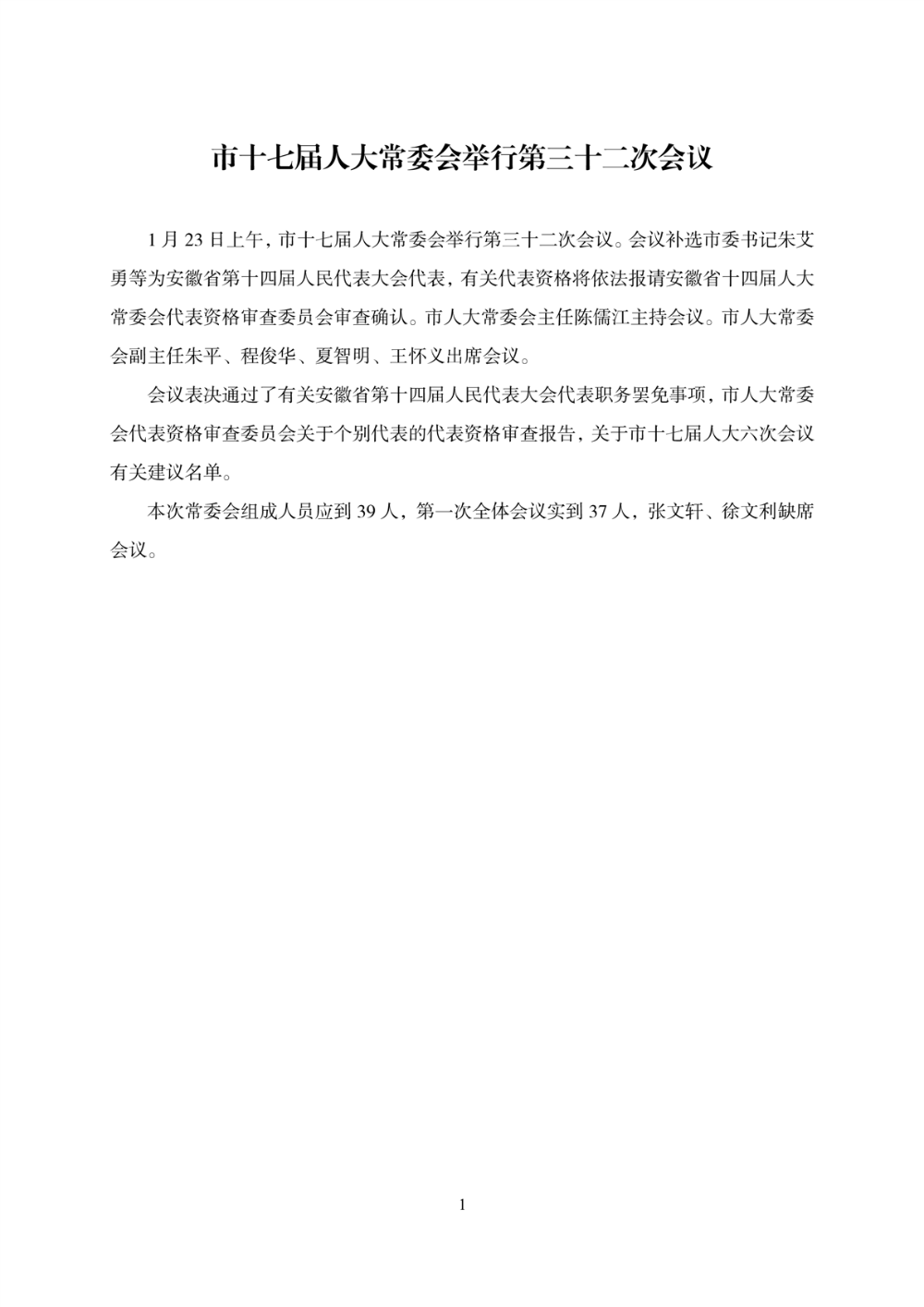 市十七届人大常委会第三十二次会议公报