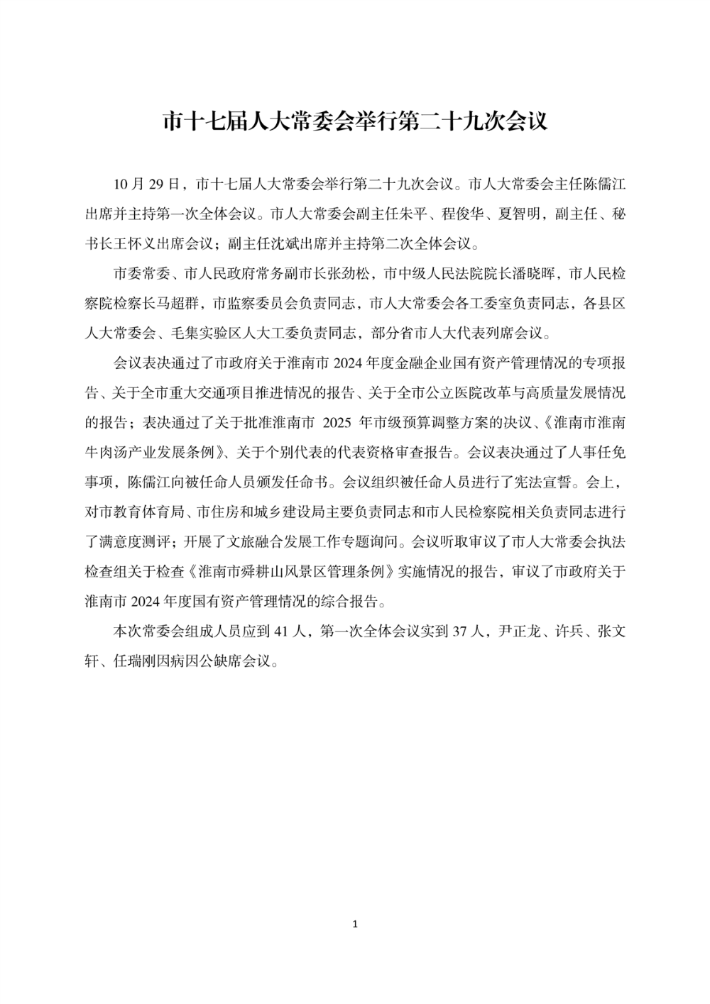 市十七届人大常委会第二十九次会议公报