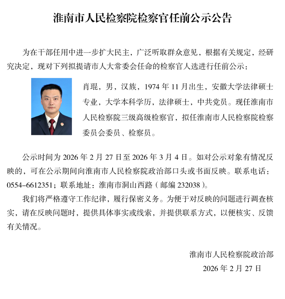 淮南市人民检察院检察官任前公示公告