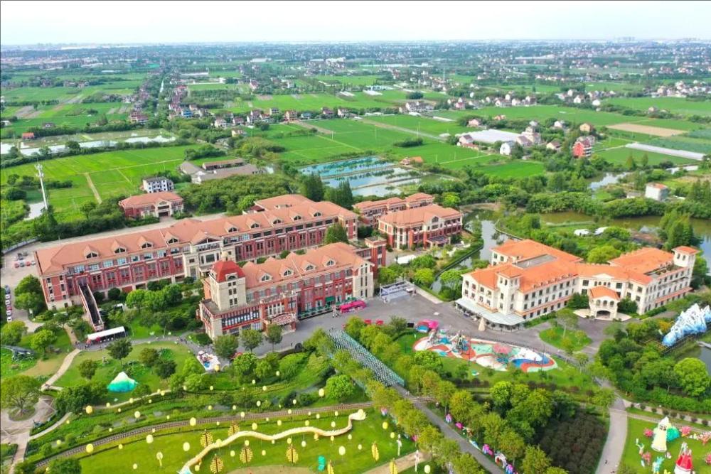 在浙江省嘉兴市嘉善县缪家村拍摄的歌斐颂巧克力小镇(2025年8月7日摄,无人机照片)。新华社记者 毛竹 摄